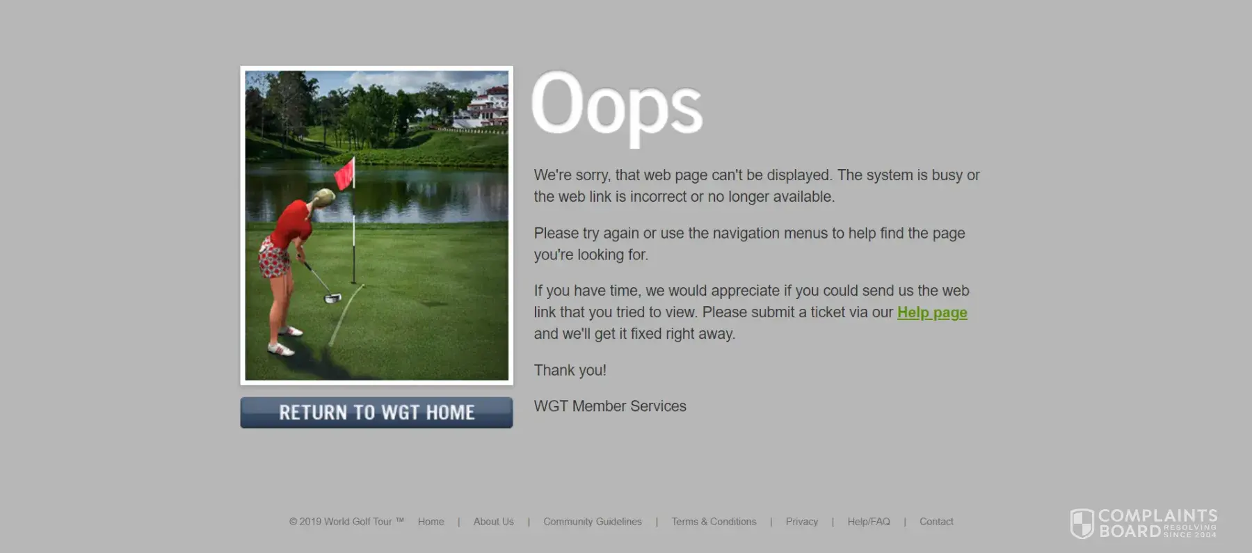 I've been sending in messages over several weeks and never have I got a response back from the company. This shows you how unethical and a bunch of Krooks here on WGT. I've been playing on site over 3 yrs on and off. Last two games I played 4500 coins and both times I said both times I only played 3 holes of game and all of sudden the game was CANCELLED on me and CHARGED my account and took the coins away from. Back to BACK games. These unethical children who work at company are thieves and are time and time again steal your money mine real money $99 they still owe me and ask me to send them in a receipt or something well one it's been 3 yrs ago I found it on discover card shows then a ref #. Never Never Never got a response back. So I aske you WGT are you as low dispickable low life person (devil) that you can't act professional and own up to your actions I ask. Waiting for response ?...