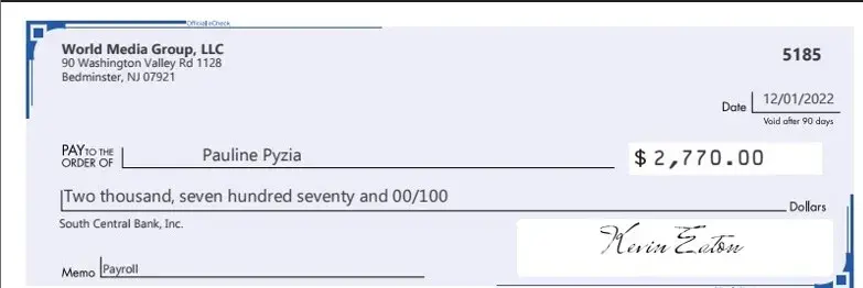 World Media Group, LLC Fraudulent Paychecks Issued