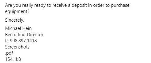 I received a job offer thru a michael hein who said your company was interested in me as a customer support specialist.. I went along with his emails and today 12-1-22 he sent me a e check to deposit into my bank.. I always verify out of state checks and the bank name is south central bank, inc in ky said the check 5185 was fraudulent. Then he emails me back and says other employees deposit the echeck successfully..