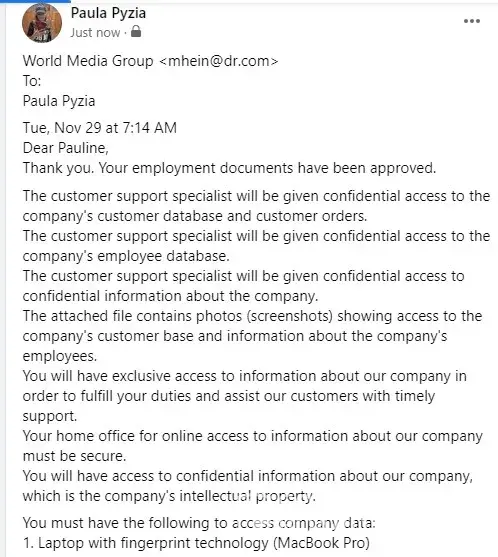 World Media Group, LLC Employment scam