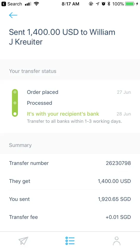 First the trap: they let me register my account, input recipient info as well as my payment info. They then confirmed the transaction AND debited $2, 200 from my bank account through my debit card. They issued me a confirmation receipt and I thought, great, this is no different than WU's great service and I've saved $125 on top of it. I send the transaction details to the recipient and thought I was all done.