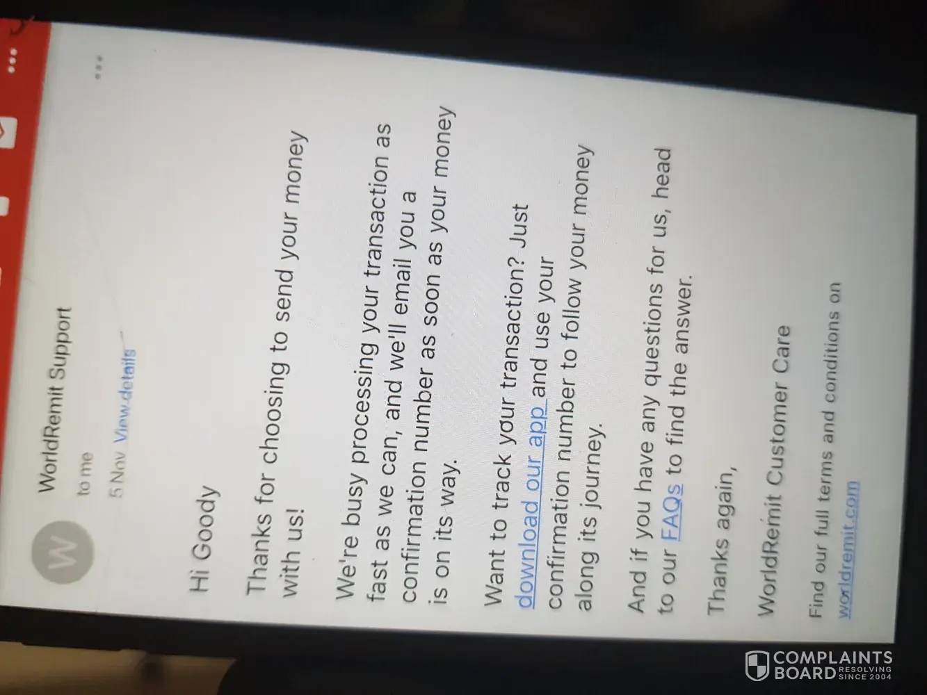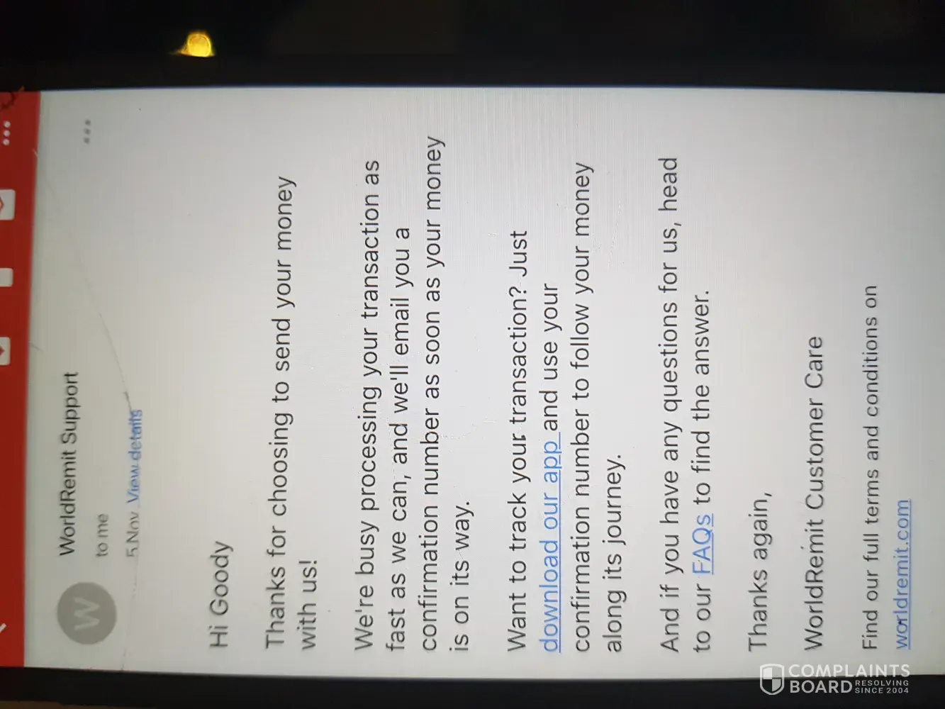 WorldRemit Complaints Page 14 of 18