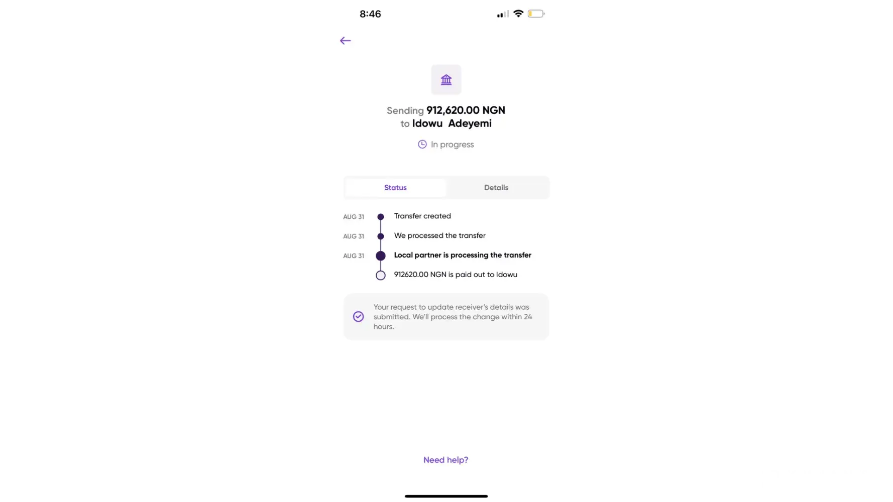 I hope we get this money back soon. Never gonna use this worldremit again.