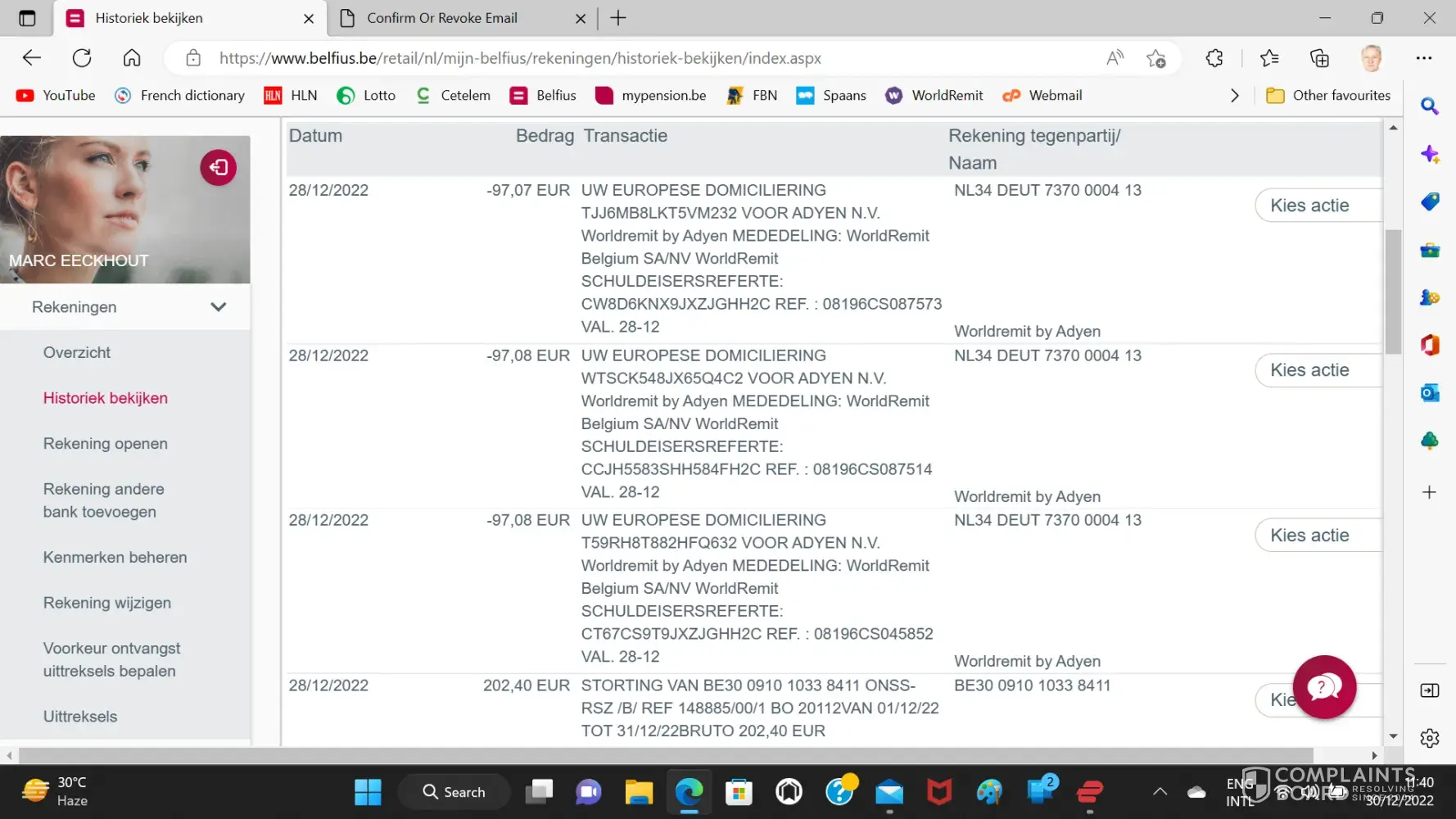 On 28/12/2022 three fraudulent transactions of +-97 Euro were issued by Worldremit as European Automatic Debits, never initiated by me, in favour