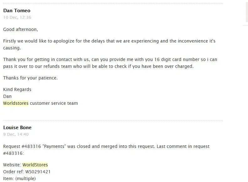 WorldStores Extremely poor customer service, false information and no product delivered after being order four months ago