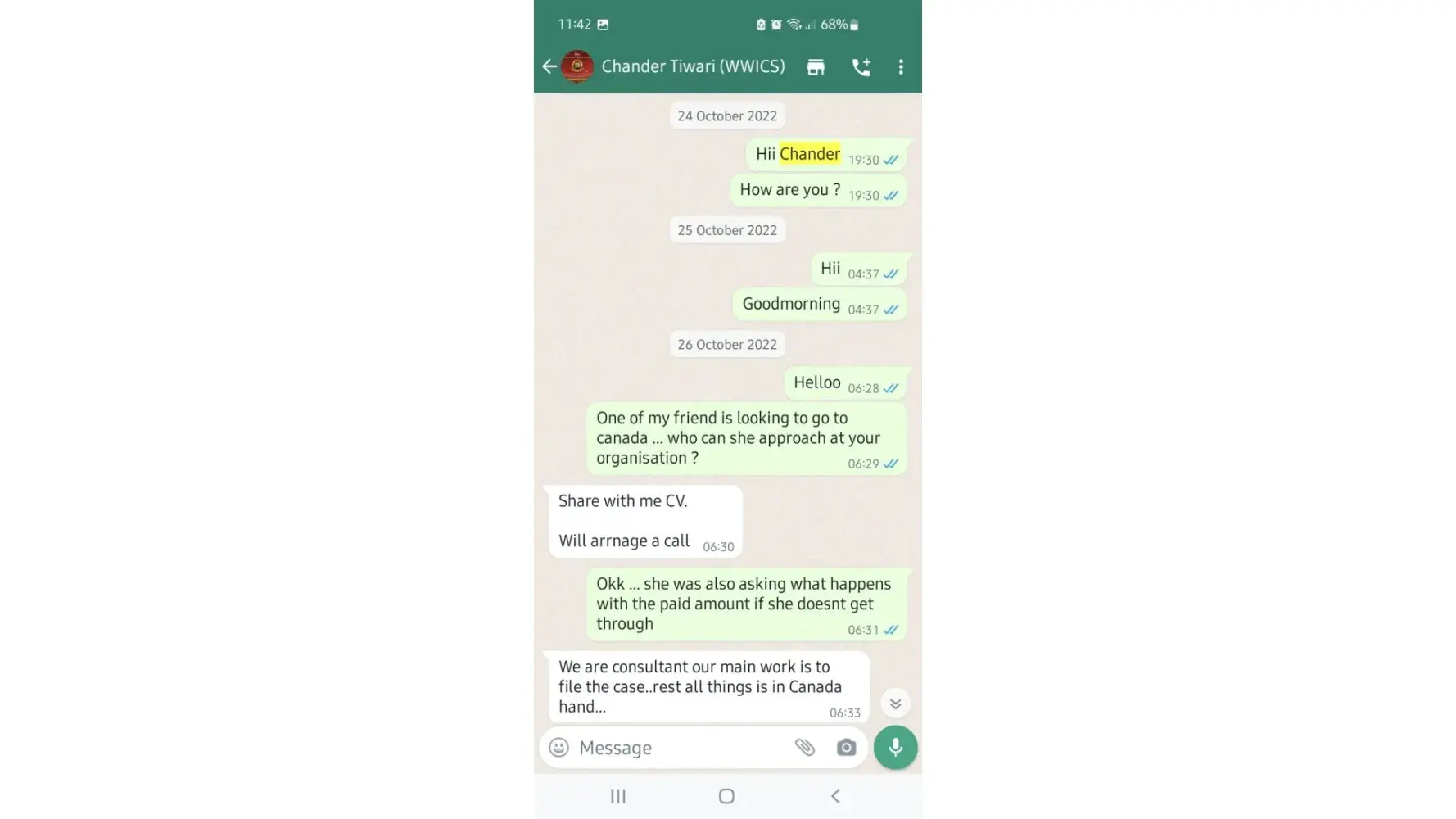 This might seem similar to other complaints but I realized and saw wwics trying to pull of their stunts in my case. It's a universal truth that consultancy like wwics expanding their territory in large chains across the globe should be pinned down by some Good Samaritan. It's not only these guys play safe in gulf otherwise metaphorically their "pants will be on fire". What kind of whacks doodle company is still preying on the innocent and vulnerable people who have to walk on knife to either get through or when find out wwics playing a stale game to gobble all hard earned penny with no conscience. It's not the service of these parasites I wanna talk about but the Guys working in muscat branch who have just a lame LIC work experience background playing hard ball with the gullible. The senior manager guy Chet and consultant Ajay are two pig heads in the branch who blocked my number when I asked for refund. Three years I couldn't file the application for Canadian PR. Started the process in 2015 Feb . Finally after three years I completed wwecs and IELTS. But all of a sudden some kind of hunch that occurred to me that I should not start this process with wwics since from the beginning couldn't even move forward in this process. In grace of god... I realized this before filing application and requested for refund. From the very minute, my number has been blocked by the guy who works as SM in wwics name Chet. I have not heard from them for last one month. Once I file case with ROP and move the case to PSCP court I'll be sharing how ‘d it go and how I managed to get the refund in a few days of time. The temples I went for last three years and my prayers has protected me from losing money. I have justice ma side and will get all the money from wwwics once the case is filed tomorrow