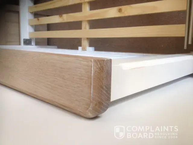 I then noticed that the headboard's wooden top was manufactured the wrong way round with the flat edge facing out. It looks ridiculous!