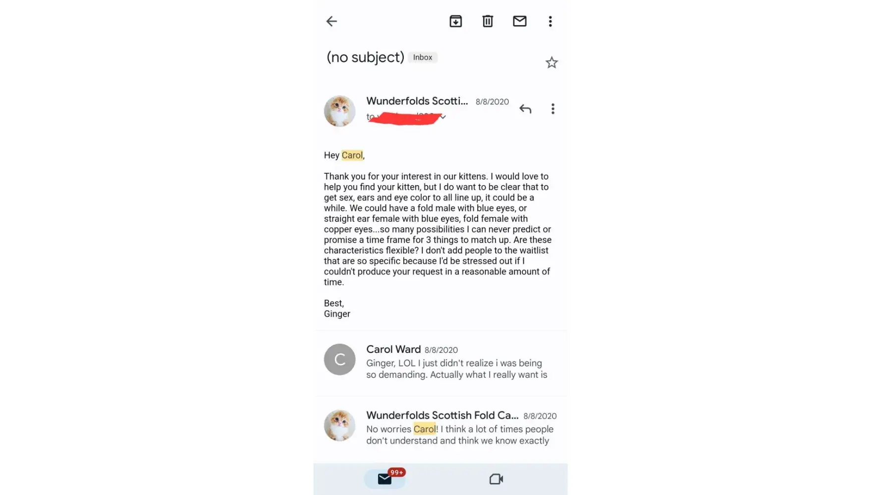 There are no guaranteed refunds. Waitlist is made clear it's non-refundable, and Carol was in line for over a year, offered many, many kittens, and then let me know she didn't want to be on the list a year and 3 months after being added. She was sent a response, so saying no reply was made to her is a lie, and I'll attach what was sent via email to her.
