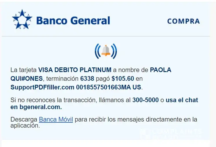 I just noticed an unauthorized charge of $102.34 was taken from my checking account by PDFFiller . This pending Transaction