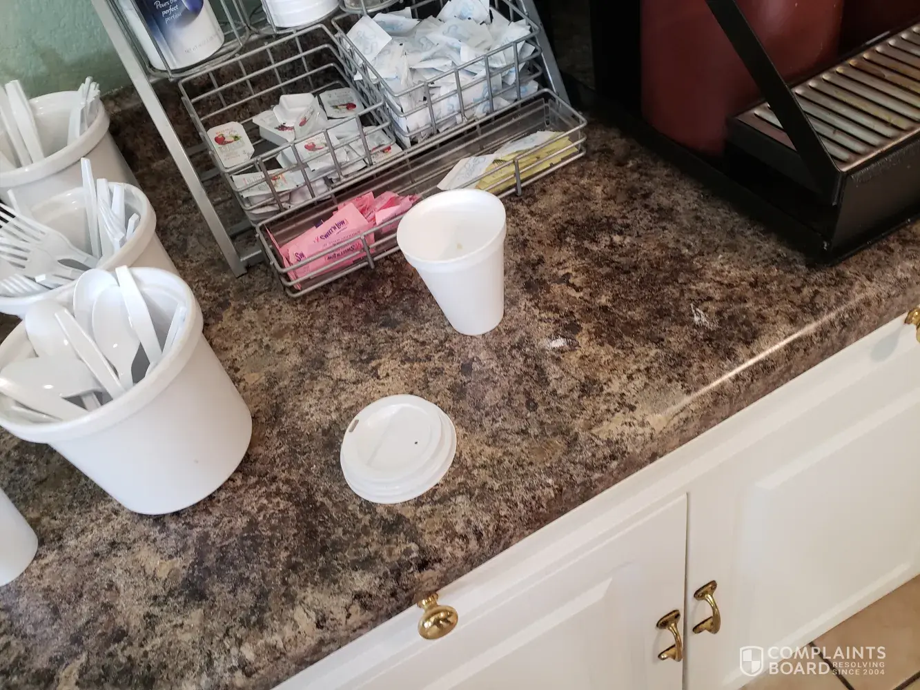 Complimentary Breakfast Area in the morning was FILTHY. I've included pictures. It made my skin crawl. I didnt even trust the coffee so I left to purchase some at the local Starbucks. I was so disappointed. Not up to the basic standards of any hotel stay, let alone a Wyndam family establishment.