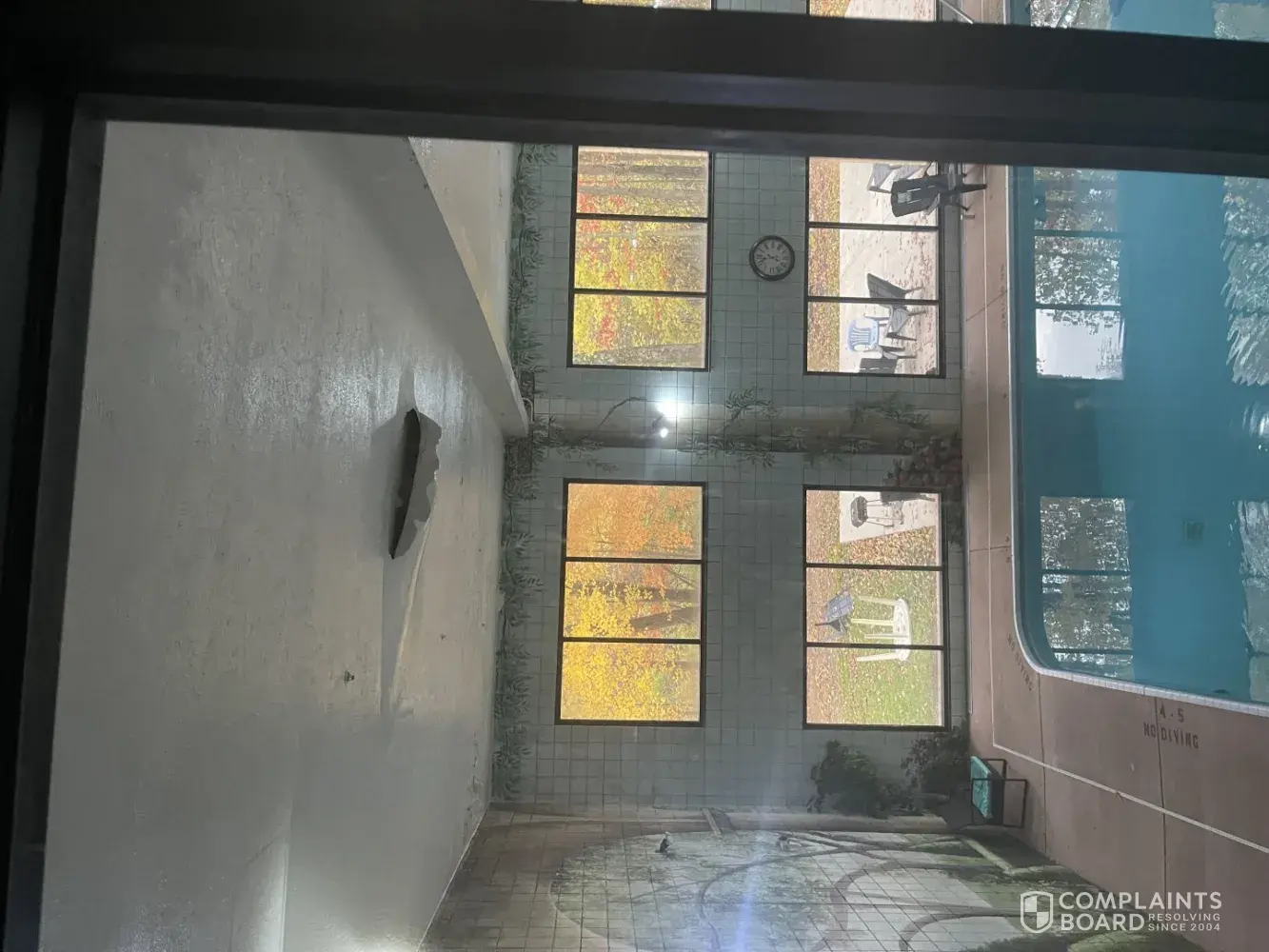 This placed was totally unacceptable. Ceiling tiles falling in the pool area, broken furniture everywhere-rooms and lobby. The filthiest hotel I have stayed in a very long time. I have pictures if requested.