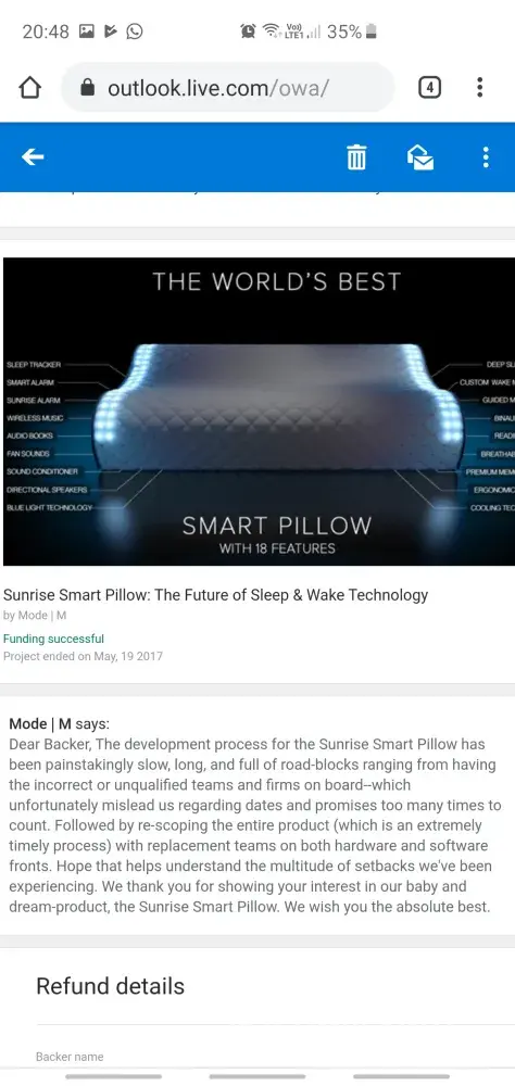 I'm sure their hope is to pay a few Backers so that they can write a review about their refund experience and hopefully get some people to remain quite. I hope what you are saying is true. I honestly hope they refund everyone Backer on Indiegogo and Kickstarter.