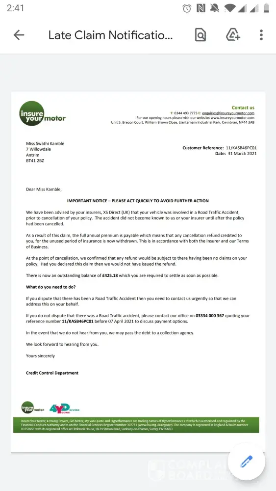 Thank you for your feedback. We’re sorry you are unhappy with the service you received. The two letters you have uploaded are not connected to each other. The payment of £1700 was an amount owed in relation to the policy excess after a claim. The letter you have provided from your broker Insure Your Motor is related to you policy premium, not the excess. It explains that no refund was due to you as there was a claim against the policy, as is common in insurance policies. Therefore any refund paid to you needed to be returned. However, if you remain unhappy you may contact our complaints team complaints@xsdirect.com with your policy number and details of the issues you experienced and they can look into this for you.