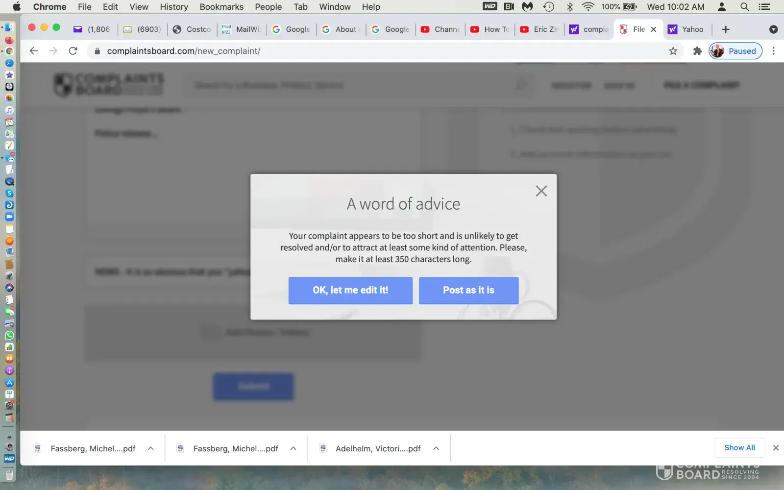 Oh, my complaint might not be read because it's too short. ok