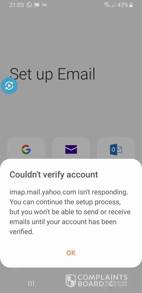 I'm unable to access my Yahoo inbox through the app on my android it says imap.mail.yahoo.com incoming server not responding .
