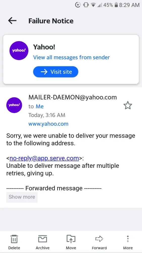 Desired outcome: Ability to Access my email on the app