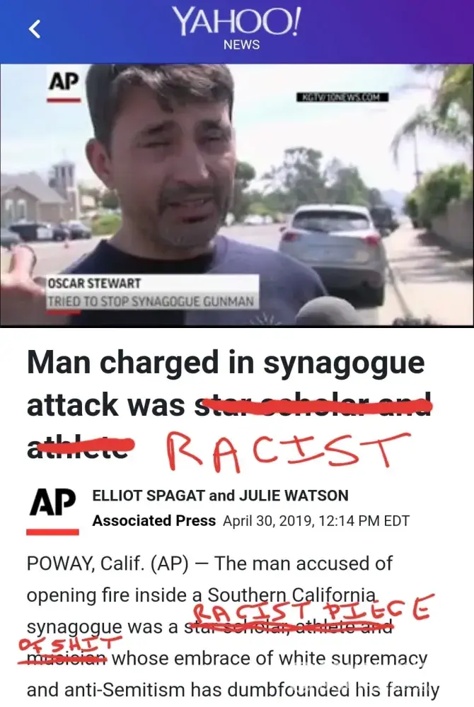 I am deeply disturbed at the pure audacity in regards to your article "man charged with synagogue attack was Star athlete and Scholar" by Eliot Spagat and Julie Watson.