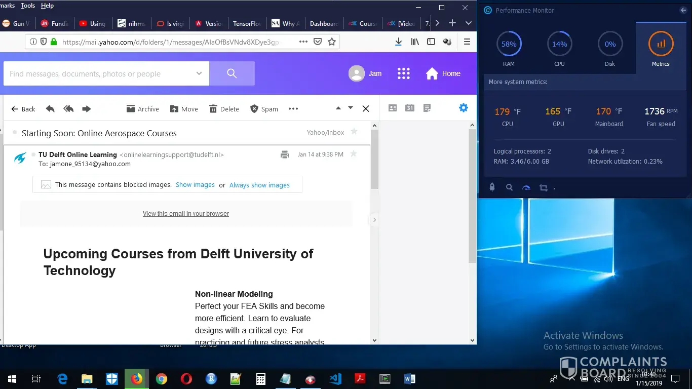 Recently visiting Yahoo! to check email or read an article, causes my laptop CPU temperatures to reach 190 (F) before crashing my laptop. It does this in about 10 minutes of entering the site. It does this with any browser, and this is the only site where this occurs.