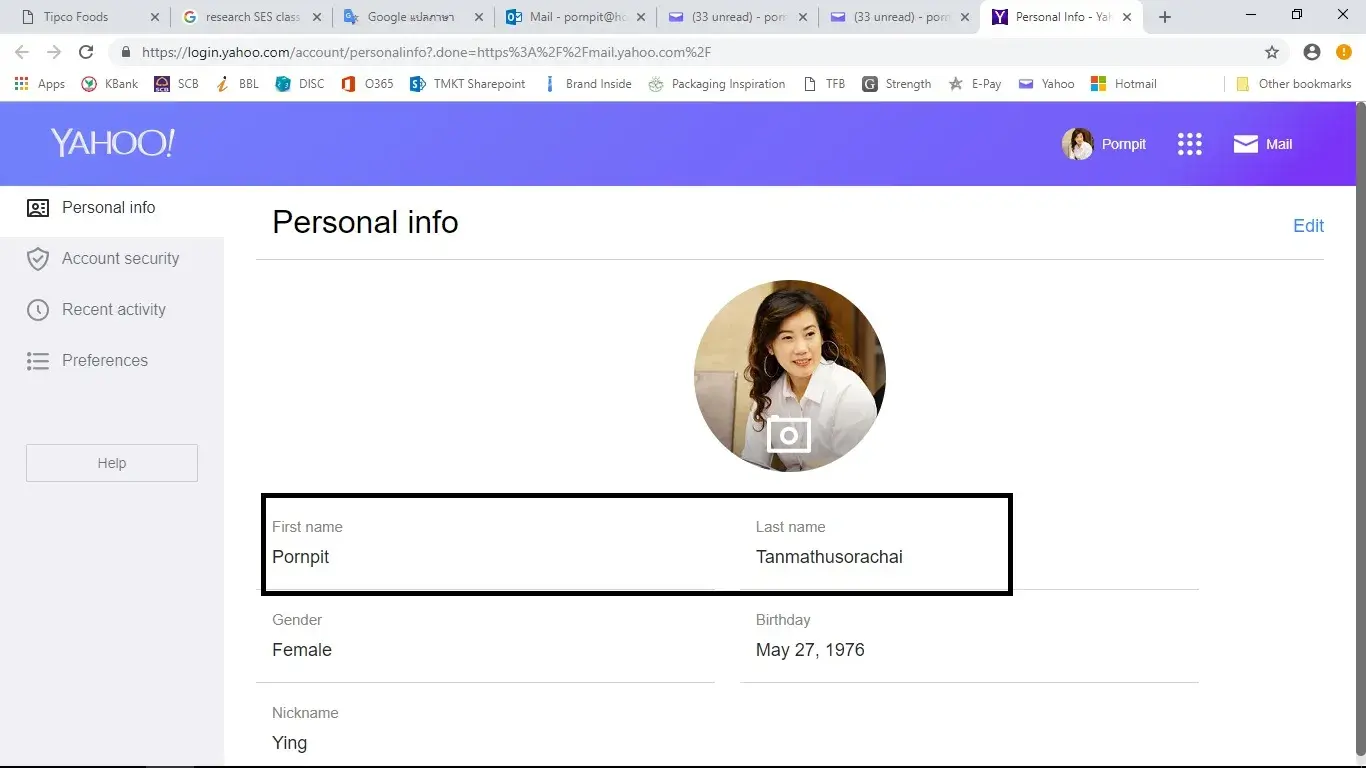 I have tried to change the surname in my account profile, it's easily editing, thanks. The problem was Yahoo still remembered the old one and still displayed the old surname in all related fields. All screen captions provided in the attachment.