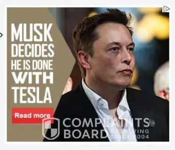 An ad keeps appearing in my Yahoo email (it's an MPU in the right hand side column) which looks like a news ad - it proclaims that Elon Musk is 'done with Tesla', when clicked, it leads to a news story saying that Elon Musk has invested 93 million dollars into a crypto currency company. This may or may not be true but he hasn't quite Tesla to do that. The story then goes on to show testimonials from a journalist who claims to have been invited to try out Elon's new company's trading platform and how much money he makes in only 24 hours.