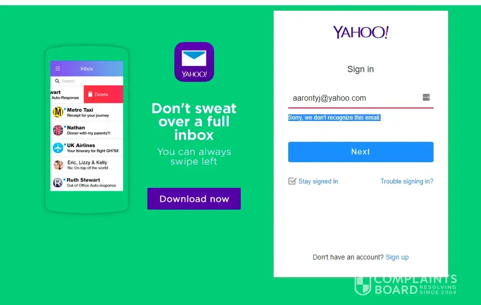 Its say that my e-mail account "Sorry, we don't recognize this email."