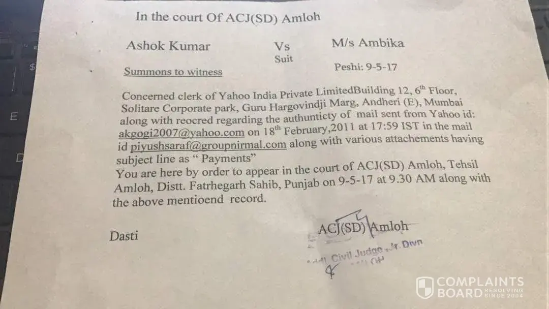 We have received a mail from the yahoo id : [protected]@yahoo.com on 18th February, 2011 at 17:59 IST in the mail id [protected]@groupnirmal.com alongwith various attachments having subject line as “PAYMENTSâ€.