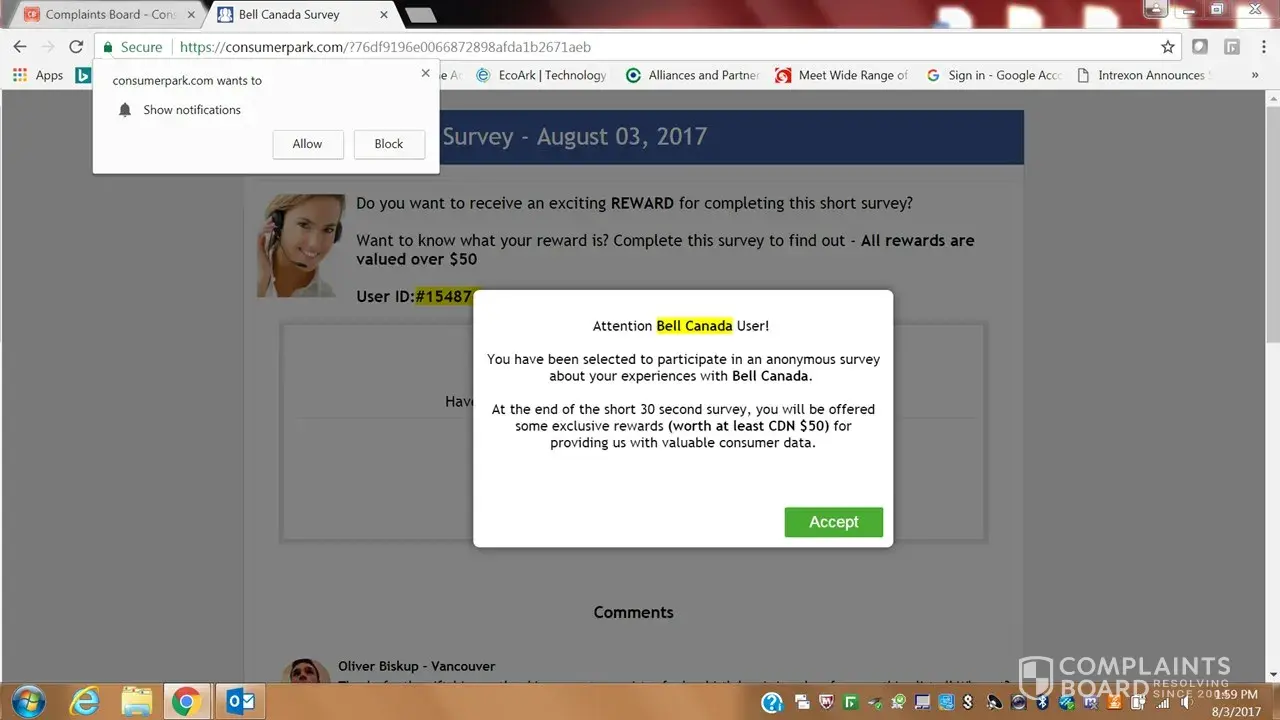 I have been getting a Bell Canada Survey and a Microsoft Update Request generated from you page at least 15 times a day since Monday. I have also had this bell request in previous weeks and the only ways to escape them are to either fill out this bogus survey or to close the Yahoo pages entirely.