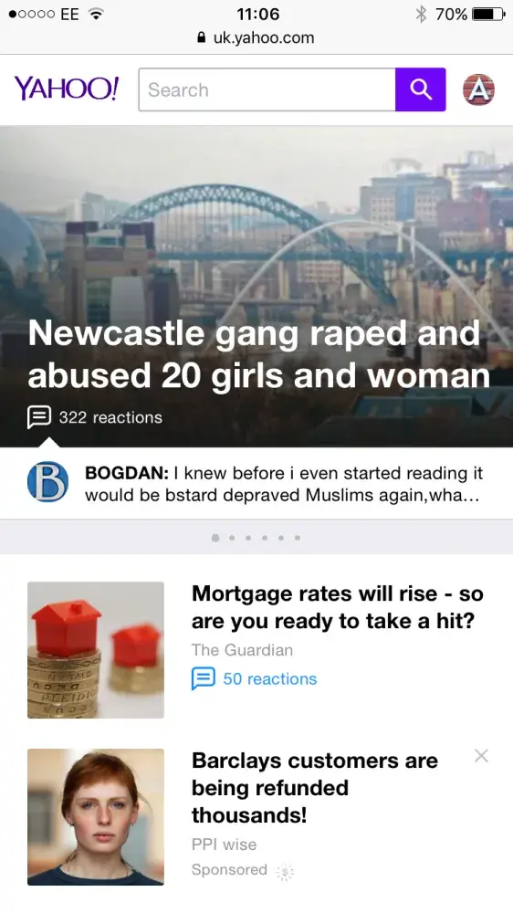 A recent change now provides me with a "reaction" to the home page news stories when browsed on my iPhone. Whenever I flick across the different stories I see what the last person to comment has to say about it.