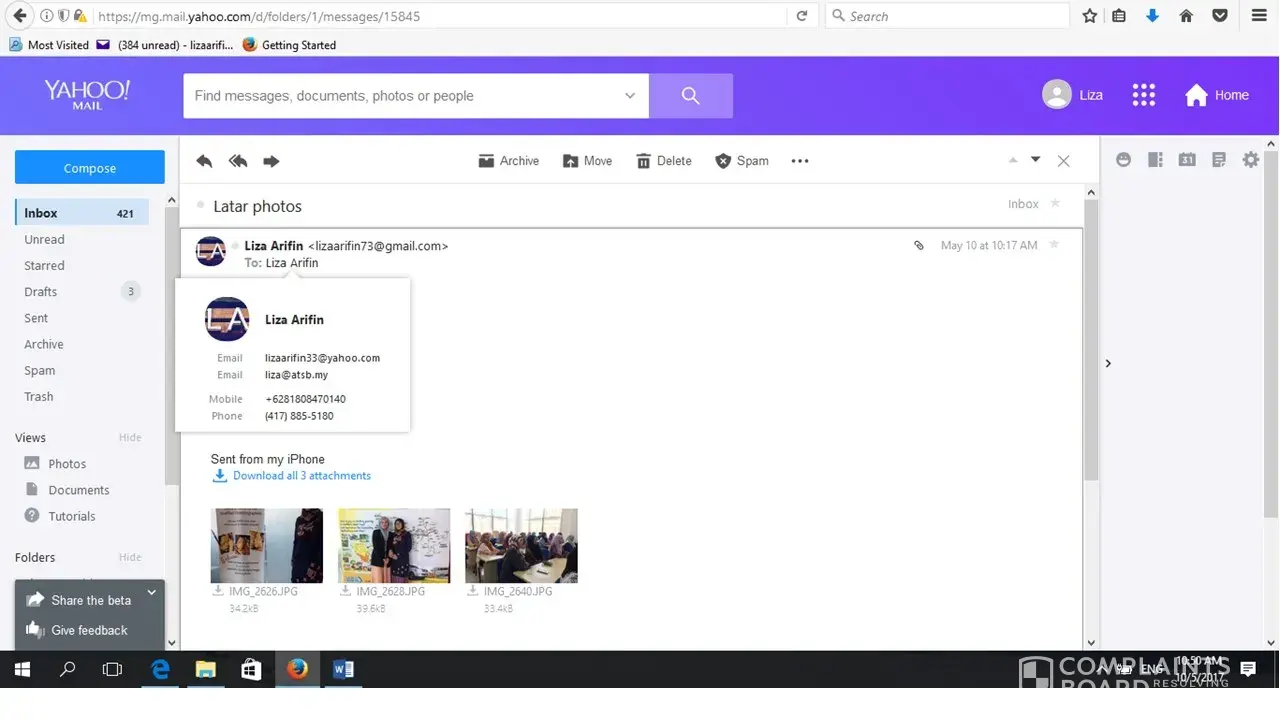 unauthorised yahoo email info displayed