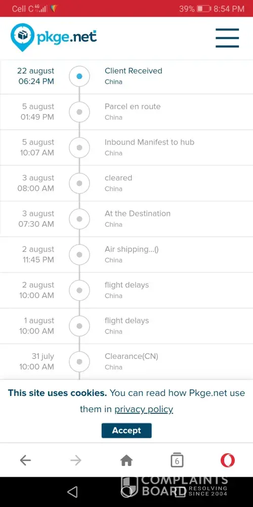 I have placed an order from Aliexpress on 1st August 2019, which was suppose to get delivered at Delhi by Yanwen Economic Air Mail on 4th of October 2019. But its 6th October 2019 and I haven't yet received my parcel.