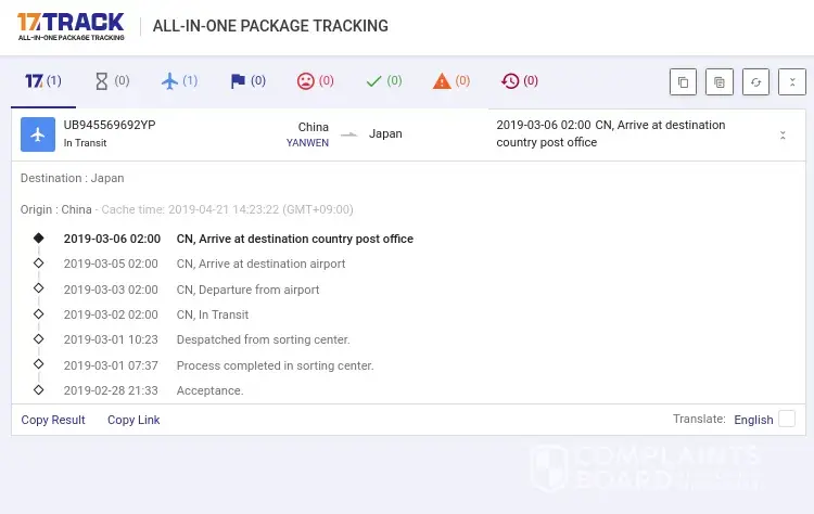 Ue739776899yp-lt615398015cn 2019-05-10 10:34 妥投 yanwen tracking number Item order number: 3103741480 Ordered 3/7/19 according to tracking no. vr055919708yp from dhgate.com Mar 22, 2019 according to tracking Delivered, left with individual -> your item was delivered to an individual at the address at 9:32 am on march 22, 2019 in riverdale, ca 93656...