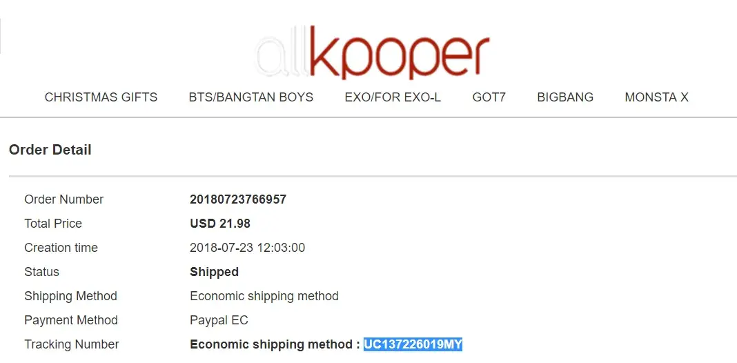 allkpoper item still in transit since july