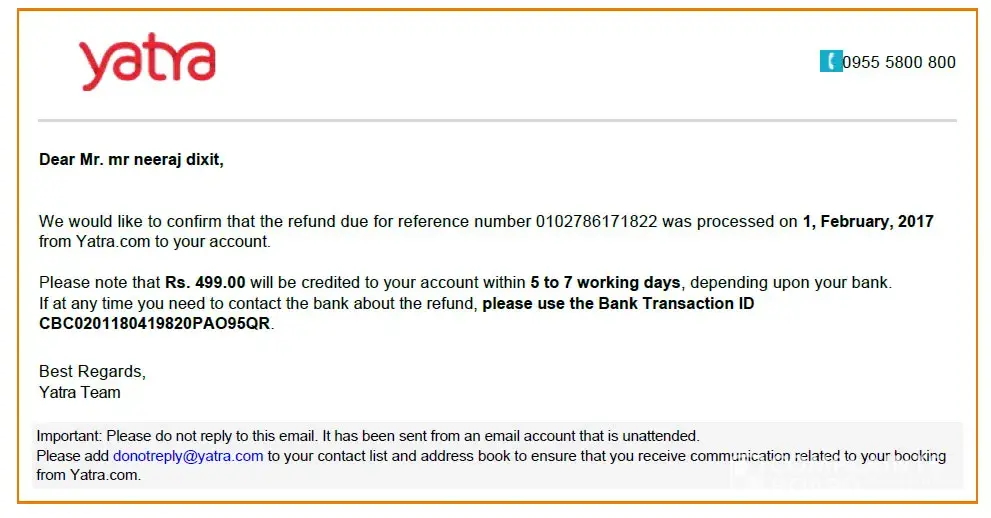 We faced problems each and everyday and called every tom, dick and harry of yatra for assistance, but to no avail. Everyday we were told we’ll be getting a call back positively, which hasn’t happened till date.
