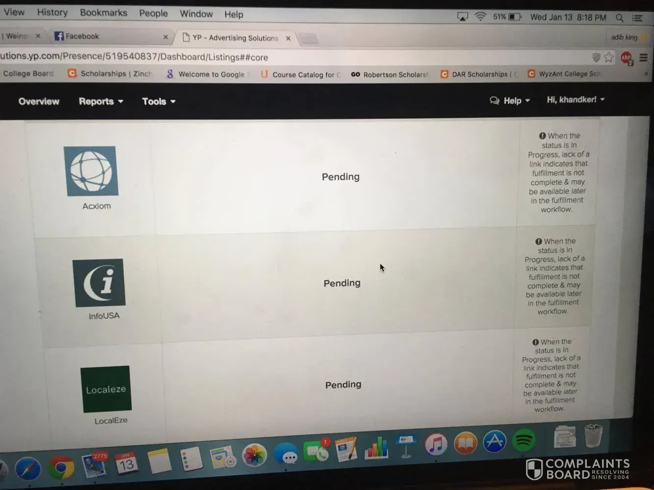 We have not received ANY business in 9 months from yp.com
