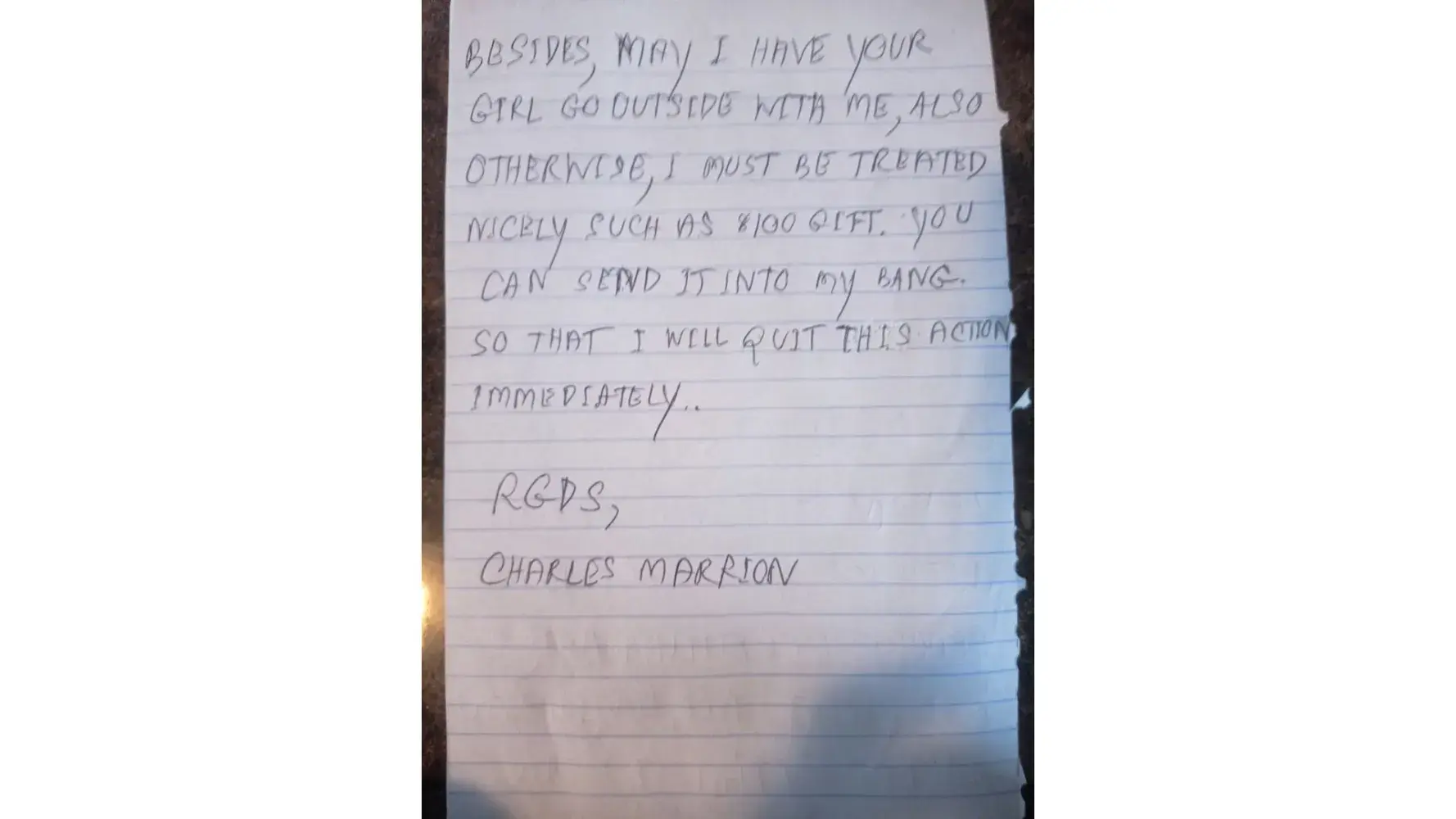 Charles Marrion has tried to bother and scam us this time. Please act fast urgently