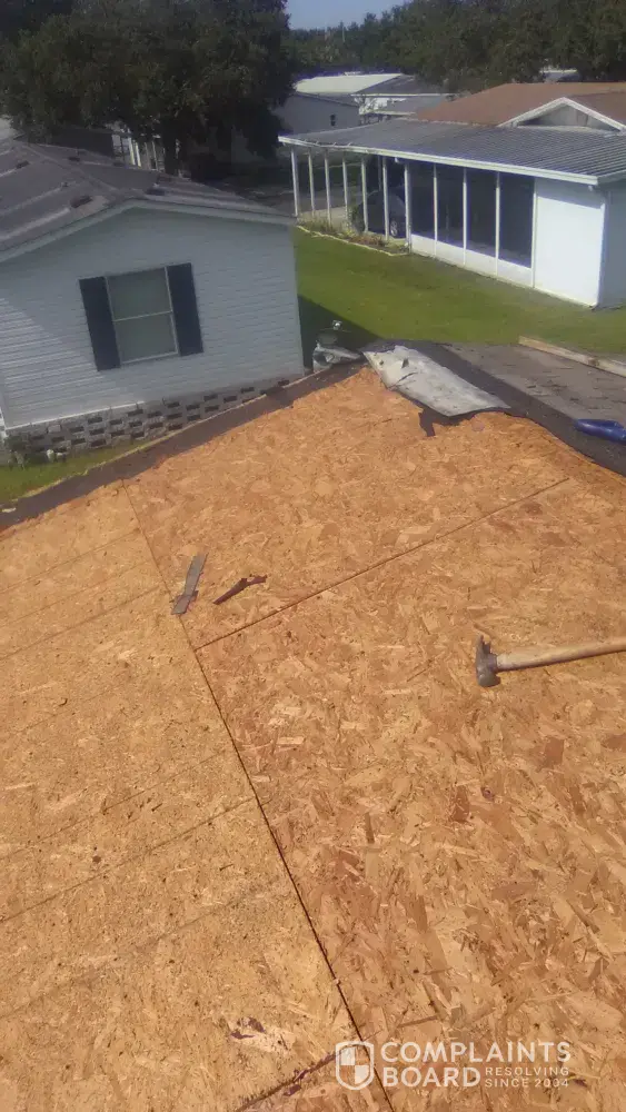 So we looked and he was patching not replacing so we told Jeremy this is not the agreement. Now he tells the men to leave left my entire roof bare and said we must vacate our home while work is being done, or there will not be anything else done I have a bare roof and tarp .my roommate has COPD and suffered extreme heat exhaustion and a mild heart attack because the insurance told us to