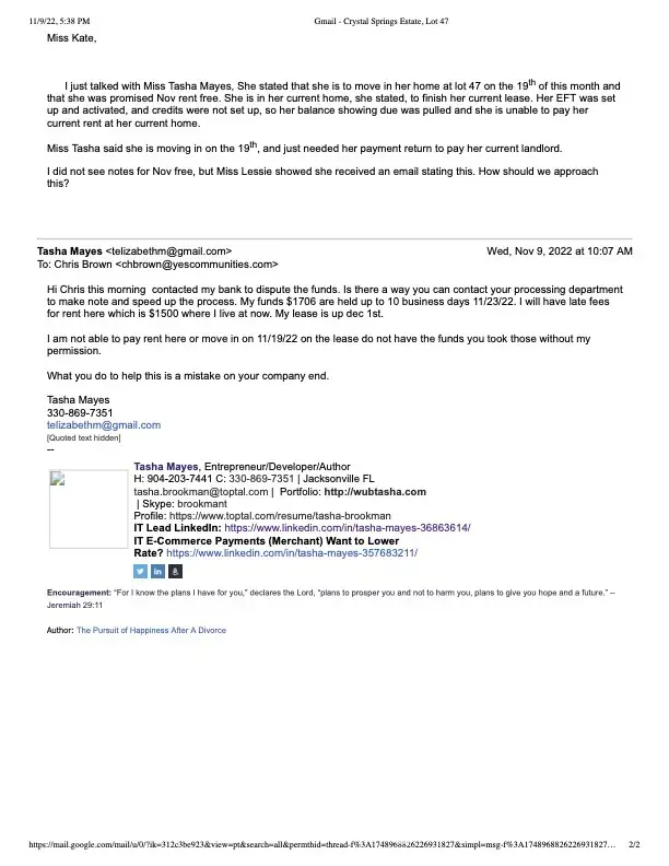 Yes Communities ripped us off back in June 28th 2022 when we first moved in and put $2000 down which was supposed to be for rent purposes only and they forced us into homeownership and we obviously didnt feel ready for that type of situation, we also have a roach infestation, Racoons under the house and a broken sewage pipe underneath the trailer, and the new management and so called Regional Manager keeps calling my phone which I never provided to them and harrass me! They obviously didnt see we wasnt ready for both mortgage and Lot rent payments together!