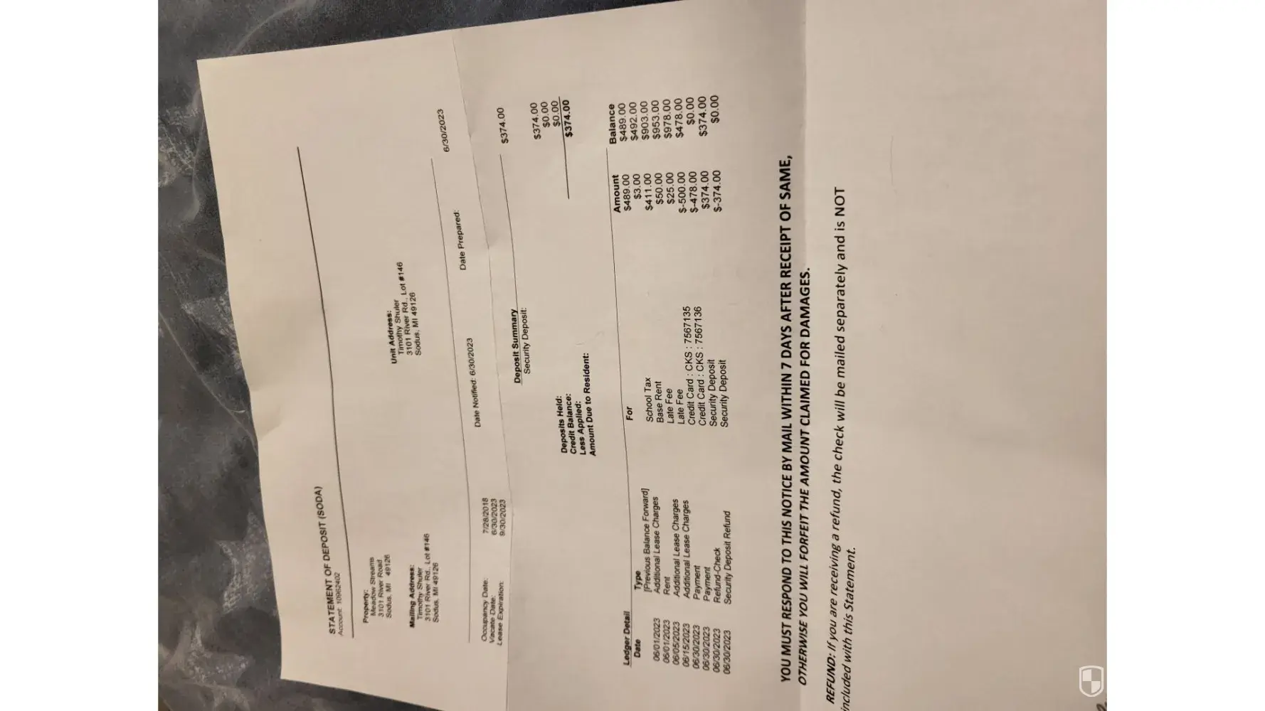 So i moved out of my home end of june this year..got a paper saying 364 security deposit will be sent to me..it almost entire month no one can give me answer to where it sent too