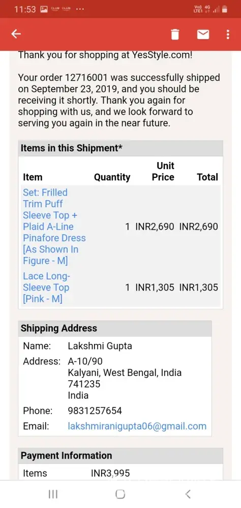 I ordered over $100 worth of clothing and used Express shipping as I wanted cute clothes before vacation. I left more than enough time for the shipping to even come late before I left for vacation. It took a week longer than it said it was going to take, and I waited everyday to accept the shipment at door front so it wouldn't get lost. The package never left the shipping facility in a nearby city. I received an email saying the address needed more information, and I quickly corrected it. Even after, It was stuck there for a while so I let my family member go and check. They needed my personal Identification even though my family member had the same last name and address as me. I was unable to receive the package still. I come back from vacation and go to the facility and they tell me the package is returned to the shipper! So now my clothes are back in Hong Kong. I email yesstyle and they reply quickly saying the courier has abandoned the order and no returns can be made, and they have no further arrangements on the issue. So I am left with no clothes and I can't get my money back.