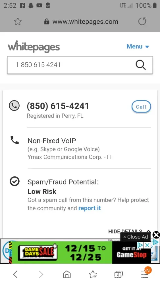 So a mr. James Foster gave me a call today from [protected] and i misses it well he left me a voicemail saying he worked for ufc or usc (couldnt tell which he said) loans and that im approved for a loan for yada yada yada so i give him a call back and mind u he sounded semi better more clear and "professional" on the VM well let me tell u when he answered me when i called back he was talking very low and almost muffled like the phone quality was bad on his end i tell him im returning his call and he starts going back into the loan stuff so i stop him and ask him exactly who it is hes looking for and he IMMEDIATELY HANGS UP so i call right back and straight to voicemail as if the phone is off so fbi lil me reverse searched his number it said the name he said but said it was a google voice number and it said it was associated with this ymax company so i immediately googled and here i am cuz white pages usually tells u if its a scam risk and there was no risk on the number but i knew it was a scam from when i called back so i reported the number for scamming to white pages so hopefully they can update they ish before even finding these forums its jus all the more proof it was exactly what i knew it was and im glad i dont get tricked and fooled by those people like some people have cuz it wud legit be some problems cuz white pages gives u they current address and age and im a pop up outta nowhere type of [censored] and that old man (it said 70s) don't want beef with me infact jus for TRYING to scam me u can get doxxed if anyone in perry fla been scammed by this company nd wna do you here ya go!