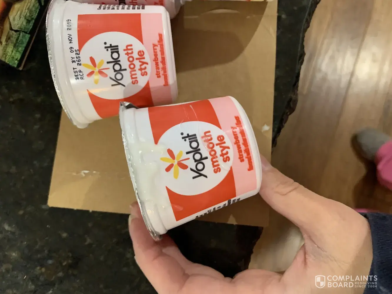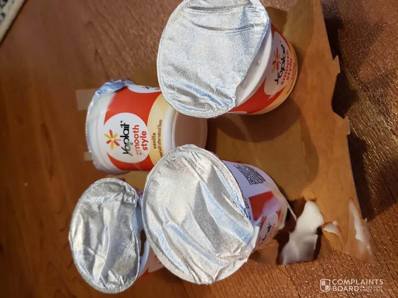 Today 9/16/19 I purchased a 16 pack of the yoplait smooth style yogurt in strawberry and vanilla from Walmart in Lockport NY. When I got it home and went to open the box, 2 of the cups were split open and had leaked yogurt all over. And 2 of the cups were open at the top where the tin foil was supposed to be sealed. I considered going back to walmart but I live 30 minutes away and the yogurt is leaking all over. I am just wondering if there is anything that I can do and just want you to be aware of the problem in order to fix it in the future. Thank you.