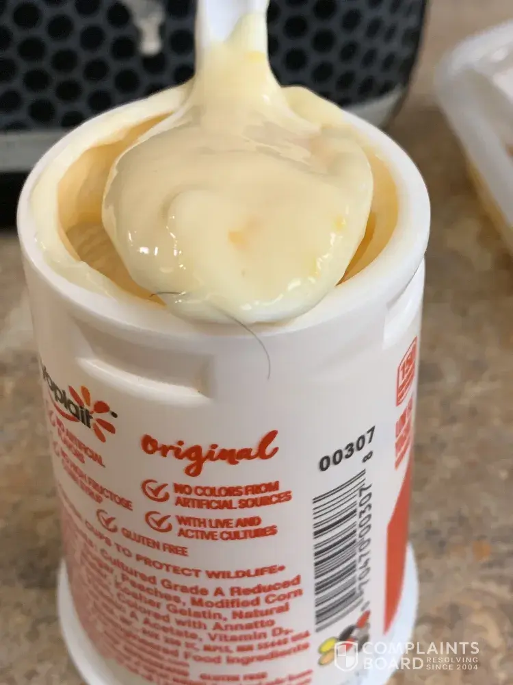This morning, I was opening my daughters favorite yogurt for her breakfast and I found a long black hair in the yogurt. My wife is blonde and I am a ginger. I would like to know what your company is going to do about this considering it's absolutely disgusting. I'm also pretty sure that it's a health code violation considering that McDonald's doesn't allow it. Thank you.