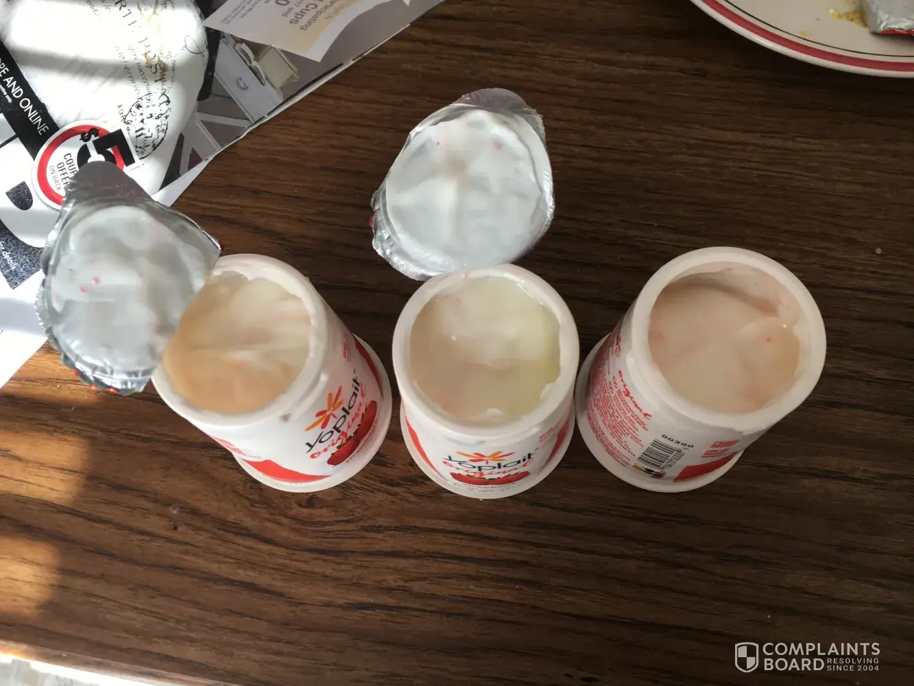 I opened 3 different strawberry yogurts this morning to find they were all white and had no flavor. The expiration dates on all 3 are 11/12/17 so they were not expired. I have been a loyal customer for years and have not had this problem. The quality of your products has been consistent and I am disappointed with these yogurts. I don’t know if it was just one batch but please fix this.