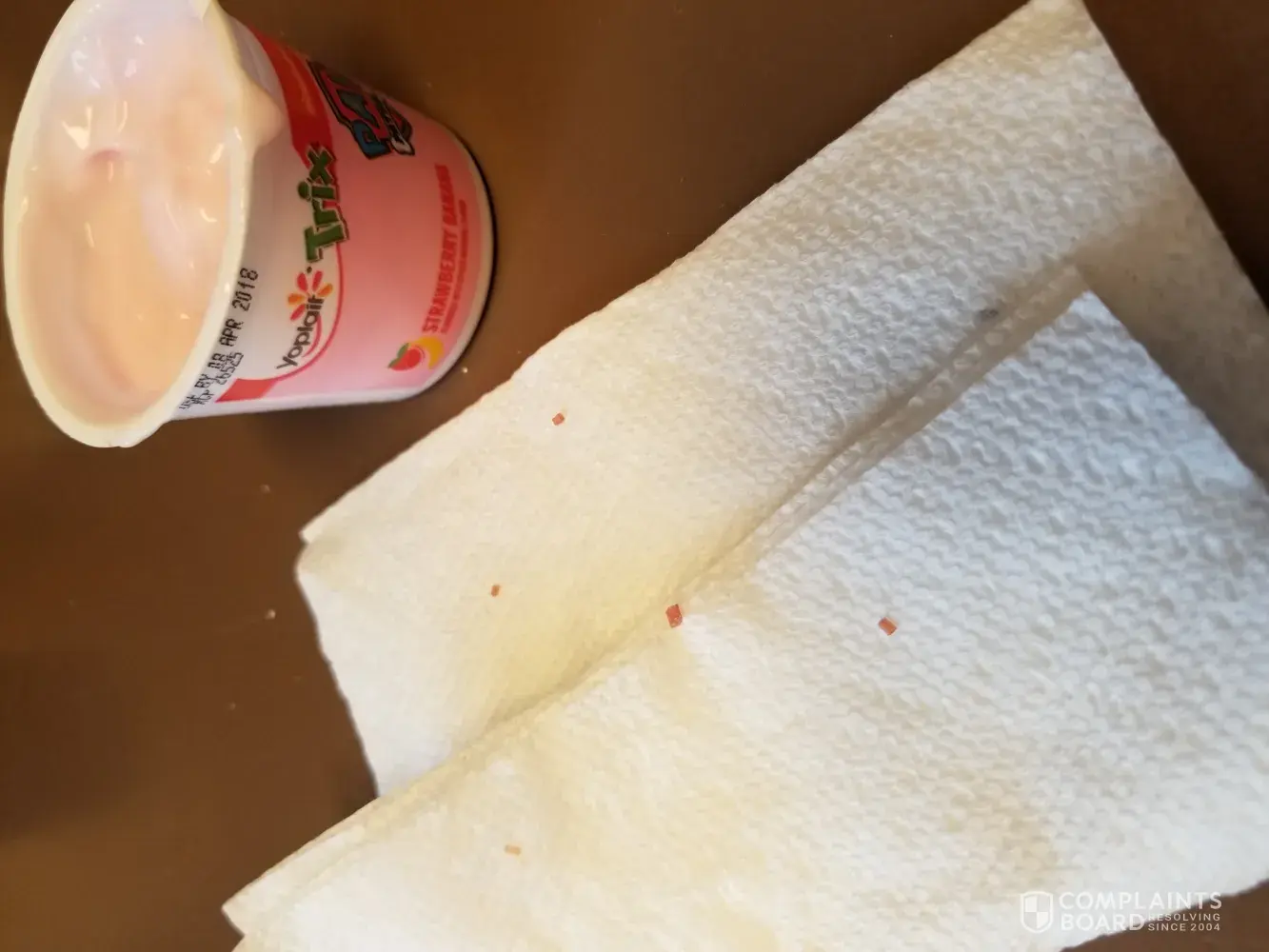 Today, July 9, 2018, I opened two strawberry yogurt cups for my kids, both from the same fridge pack, but one had little to no strawberries in it at all. I have a picture of them side by side too. My son still ate it, just wanted to let you know of this mistake. I purchased them from the JBER commissary in Alaska on Tuesday July 3, 2018. A coupon/voucher to replace would be wonderful. Thank you.