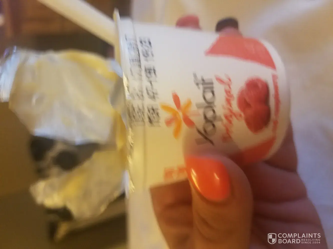 the fruit in the yogurt is rotten in most of the container strawberry and banana