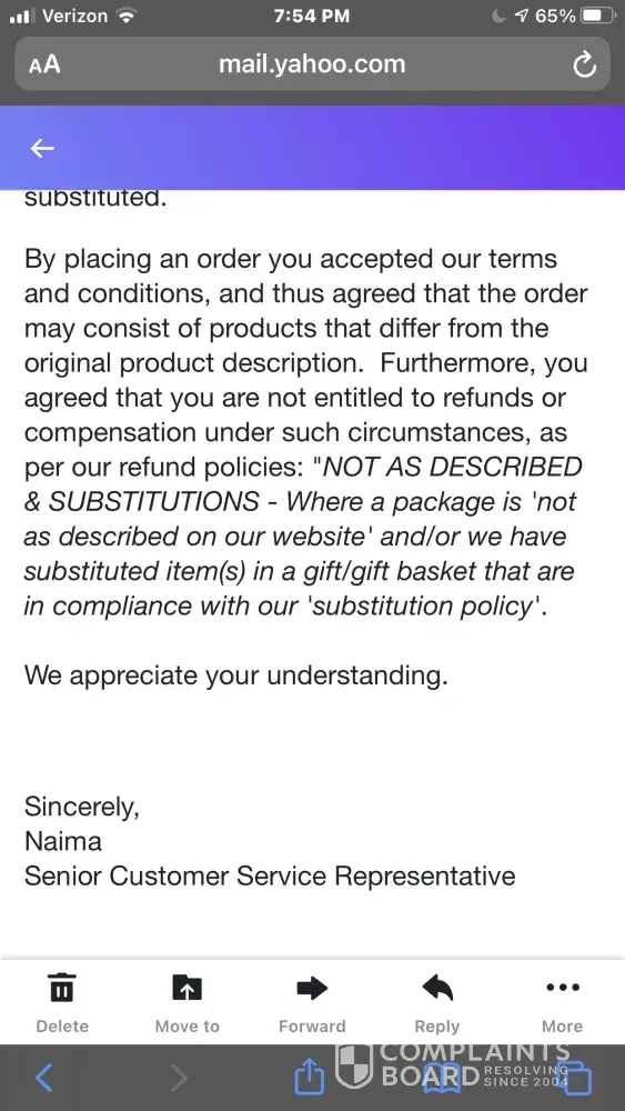 My dad ordered a gift basket to celebrate with our family for our personal occasion. He lives overseas so I don't think he saw any reviews here, yelp, trust pilot or so.