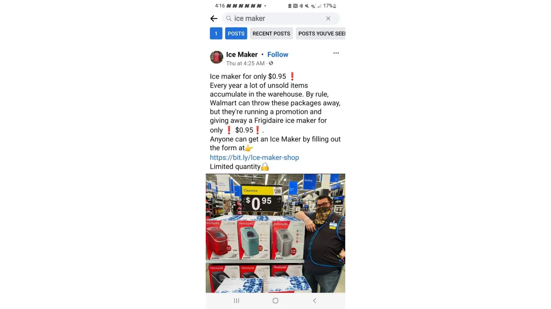 I saw on Facebook and ad to Purchase an Ice Machine for $1.95 from Walmart because they were being clearanced