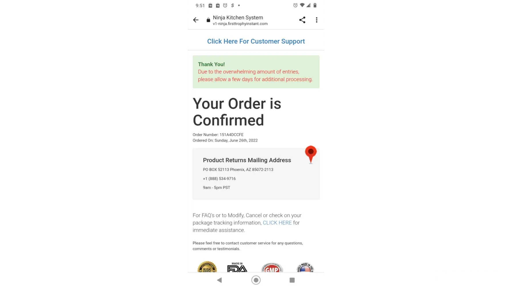 On 6/25 I received an email regarding the Ninja kitchen set that I won by doing a survey. All I had to do was pay shipping of $1.95. shortly after I was charged $89.95. I immediately tried calling the number listed for customer service and it hangs up as soon as it connects. I've called my bank but they can't do anything until it posts. I'm furious right now. I'm a single mom barely making it. I need this returned to me asap!