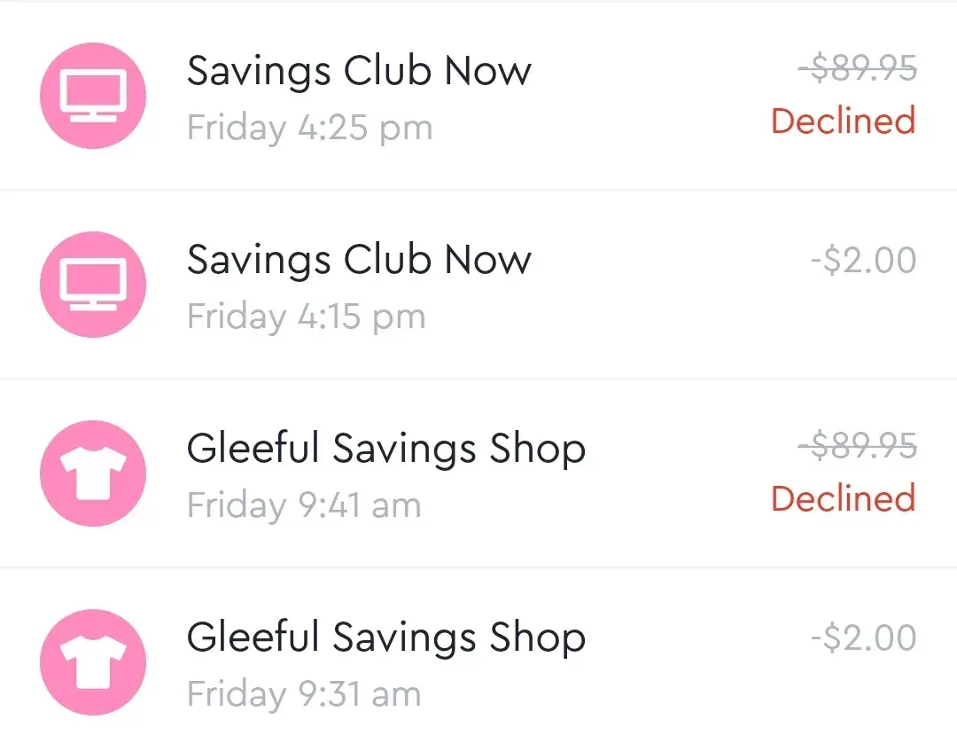 Savings club now unauthorized charges