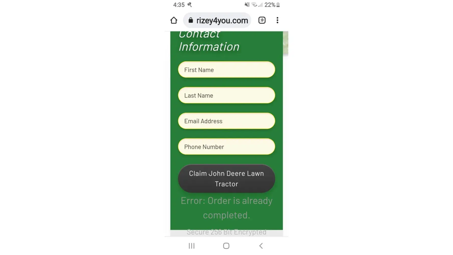 They had a promotion for John Deere lawn mower that opted for a $1.95 shipping and handling fee. I concerned to that and it charged my account then within 15 mins. Another charge came through for $89.95 that I didn’t read anything about and wasn’t informed about. I haven’t been able to find any information about this company to try and get my funds returned and cash app says it’s my own fault basically I’m beat.